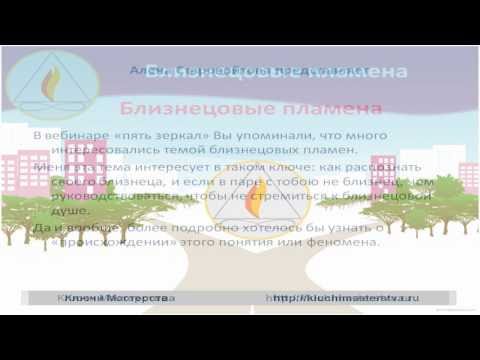 В вебинаре «пять зеркал» Вы упоминали, что много интересовались темой близнецовых пламен. Меня эта тема интересует в таком ключе: как распознать своего близнеца, и если в паре с тобою не близнец, чем руководствоваться, чтобы не стремиться к близнецовой душе. Да и вообще, более подробно хотелось бы узнать о «происхождении» этого понятия или феномена.